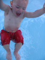 Pushing "Dolly" in the swing. (Funny moment at the party, I was opening some clothes for Tad from Gma & Gpa and found 2 baby outfits, I thought for sure they were for my sister-in-law, and turned to give them back to my mom, nope, they're for Tad's Dolly! They're size Premie and fit perfectly!)